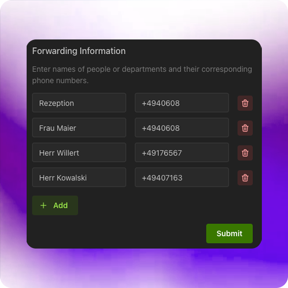 Ihre Kunden sollen das Gefühl haben, direkt mit Ihrem Unternehmen zu sprechen. Darum spricht nuvoca in Ihrem Kommunikationsstil und nimmt Anrufe in Ihrem Namen entgegen.